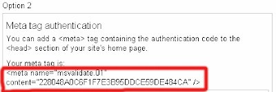 Untuk melengkapi keberadaan Blog Anda pada search engine Bing, Anda harus mem-verifikasinya. Maksud verifikasi disini juga untuk membuktikan bahwa Anda lah pemilik sesungguhnya dari Blog tersebut.
